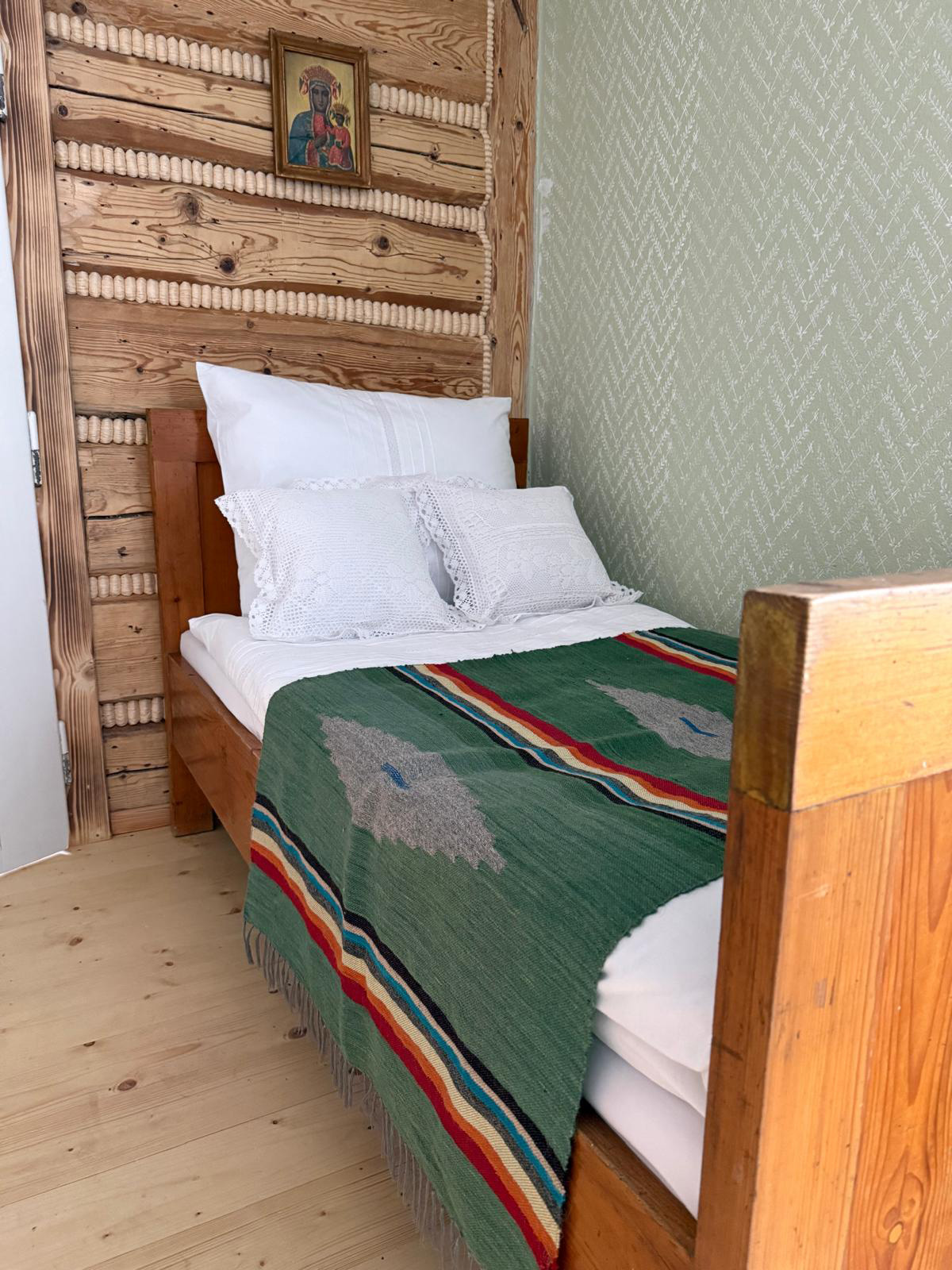 – Na piętrze znajdują się dwa przytulne pokoje. W każdym z nich jest łóżko dwuosobowe oraz możliwość przygotowania dodatkowych dwóch miejsc do spania. Każdy pokój posiada własną łazienkę z prysznicem.